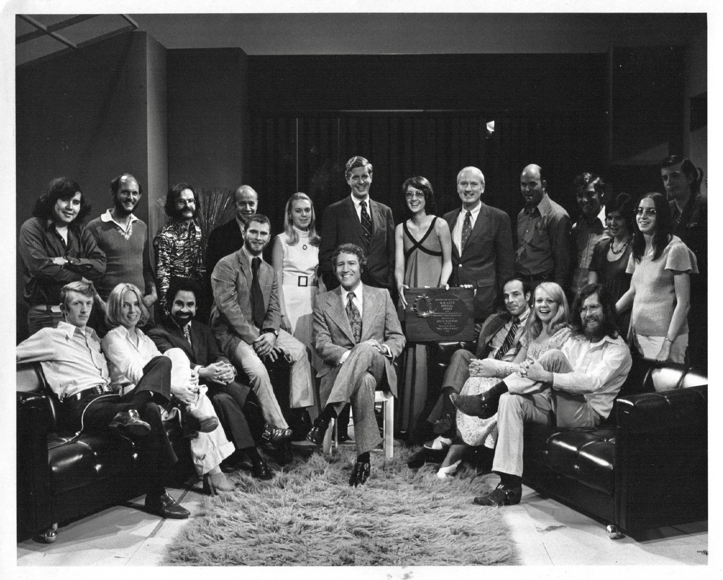 Wall $treet Week panelists (Louis Rukeyser front and center), production and crew members. Not sure how I got in this one since I was a fill in as a camera operator. This is from the end of the first season.(photo courtesy MPT)